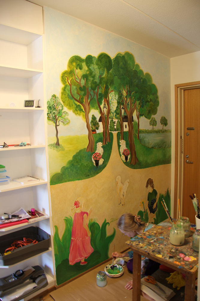Seinämaalaus yksityiskotiin, senioritaloon Mäkkylässä 2017